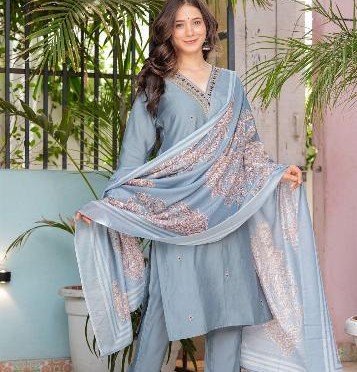 Beautiful Roman modal silk kurti with classy comfort pant and silk pri...
