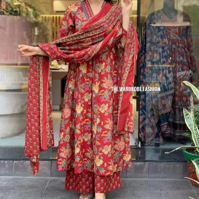 PURE COTTON AJRAKH PRINT ANARKALI KURTI ...