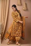 PURE COTTON AJRAKH PRINT ANARKALI KURTI WITH FULL FLAIR